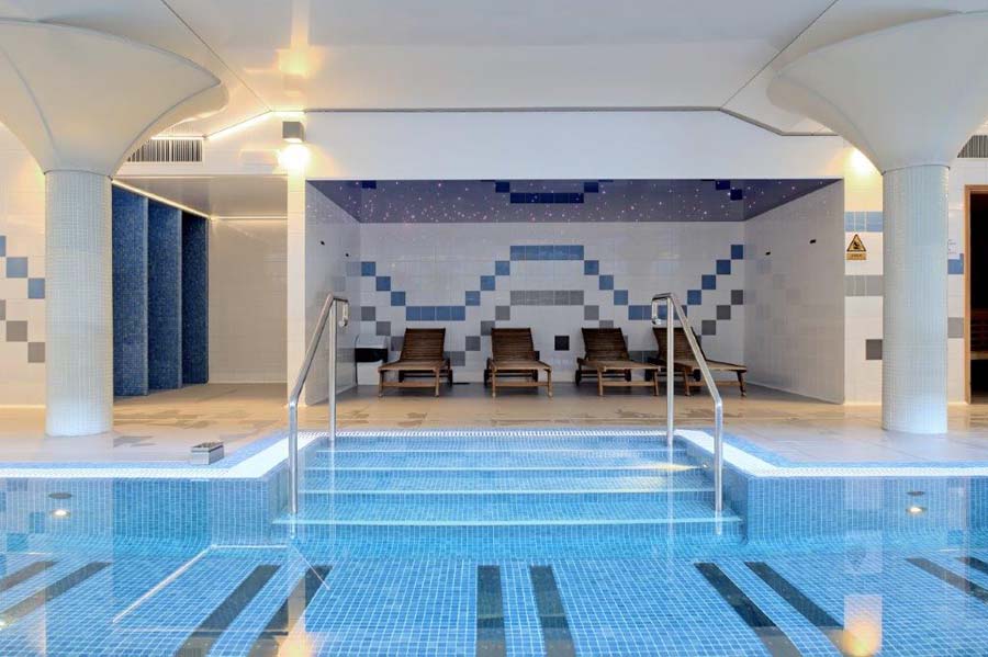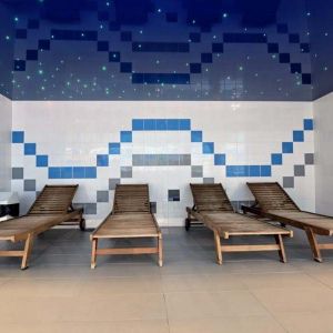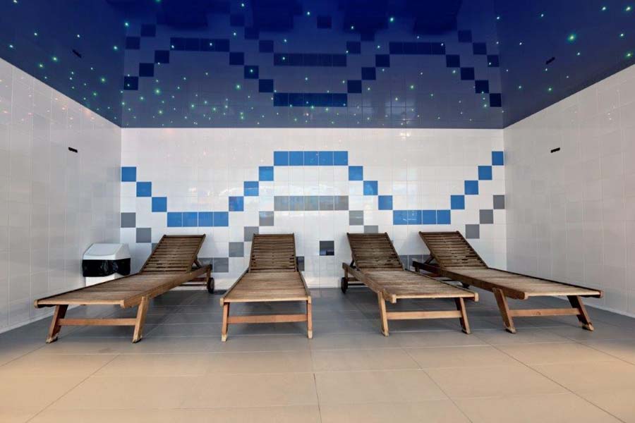 Centrum spa, strefa relasku, strefa schładzania: zamontowano sufity napinane, podświetlane, transparentne nad strefą spa oraz leżakownią, sufit wraz z oświetleniem typu: „gwieździste niebo” z generatorem led rgb sterowany pilotem.