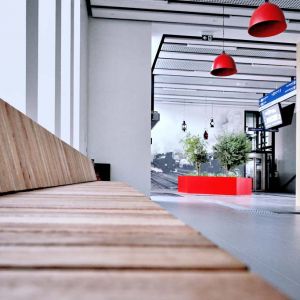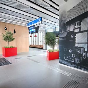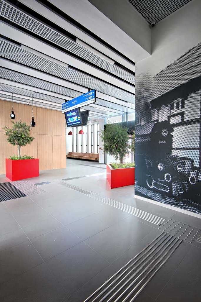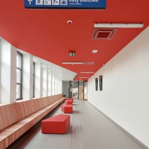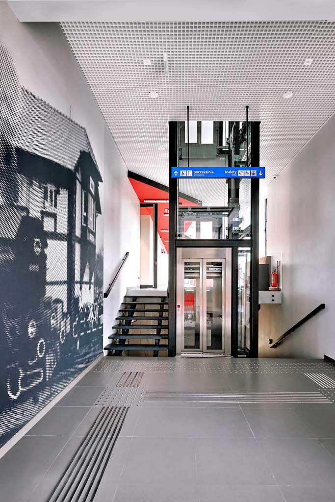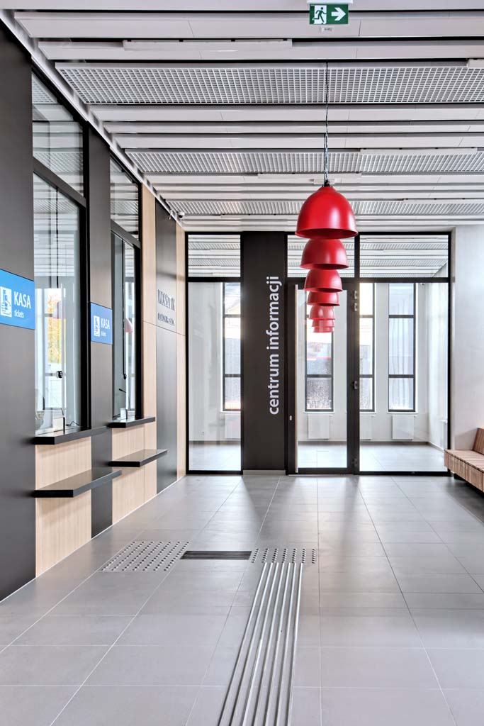 Koncepcję nowego węzła komunikacyjnego, która podkreśla historię miejsca ( parowozy i parowozownia) w połączeniu z naszymi sufitami, które świetnie wpisują się w nowoczesne elementy architektury obiektu, stworzyła firma PL. Architekci.