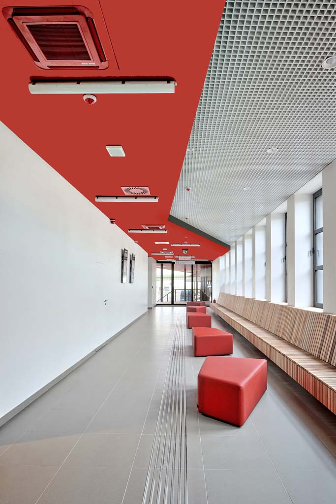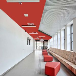Nasz zakres prac to akustyczne sufity modułowe o wysokim współczynniku pochłaniania dźwięku, sufity z płyty GK oraz metalowe sufity rastrowe w różnicowanej kolorystyce.