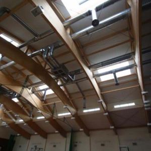 Zamontowany zgodnie z zaleceniami akustycznymi sufit, zmniejszył czas pogłosu o ok 2 s spełniając tym samym założenia adaptacji akustycznej.