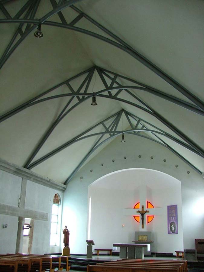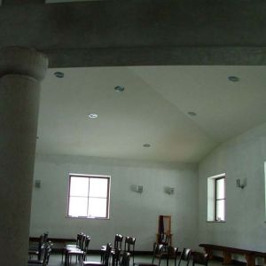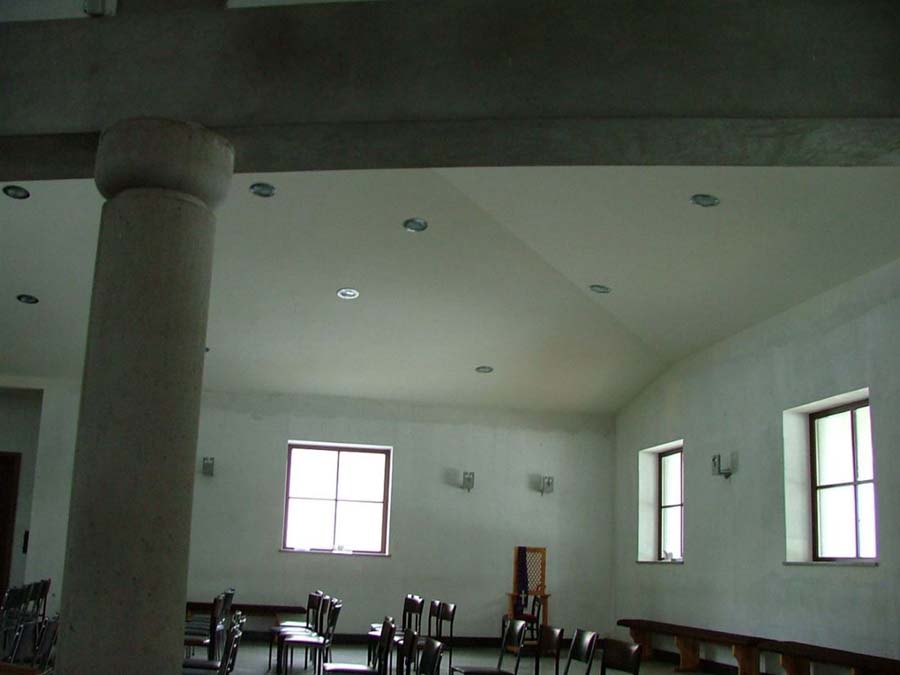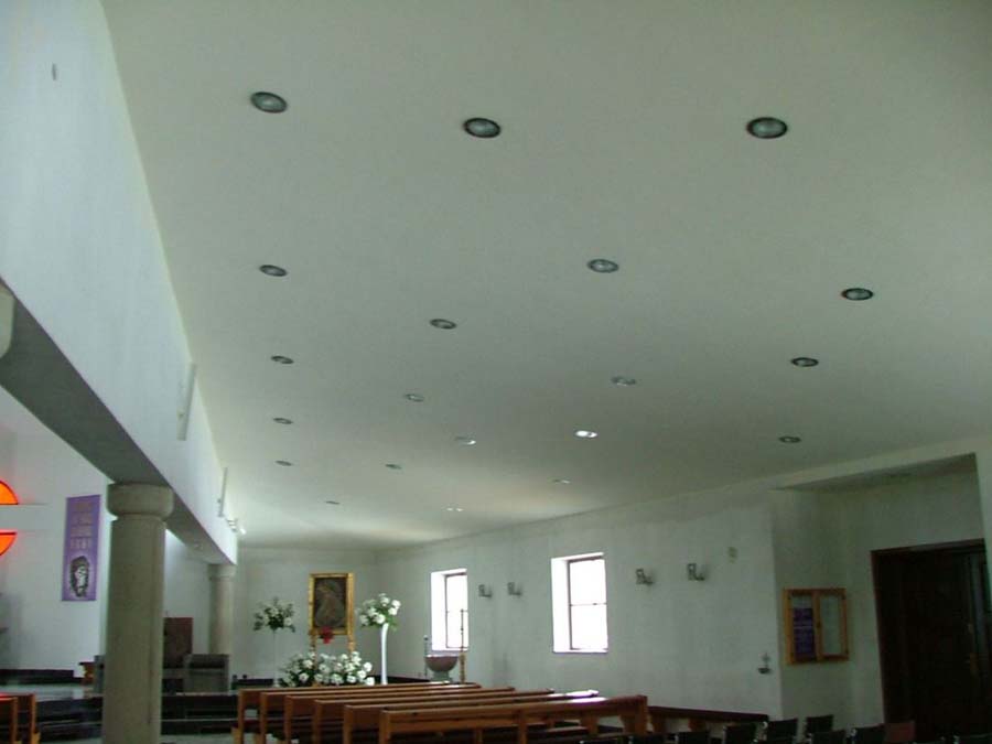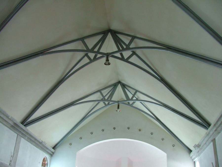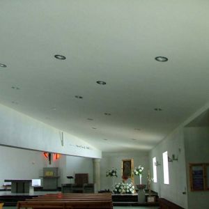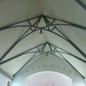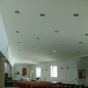 Realizacja w obiekcie sakralnym na którą złożył się zakres prac w postaci wykonania zabezpieczenia konstrukcji stalowej Kościoła oraz wykonania sufitu w oparciu o system Ecophon - nadającego wysokie parametry akustyczne firmy STO - natryskowego.