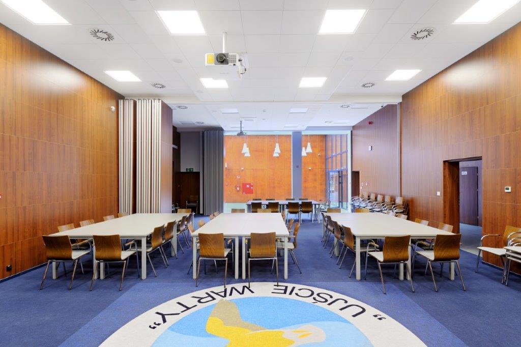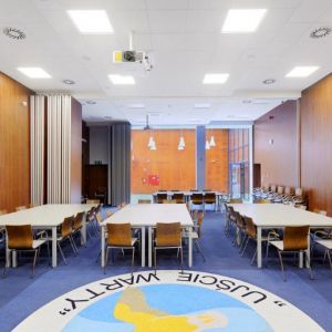 Nasza firma wzięła udział w zadaniu inwestycyjnym pod nazwą: „Budowa Ośrodka Muzealno-Edukacyjnego wraz z zapleczem administracyjnym oraz technicznym” w miejscowości Słońsk, gdzie wykonaliśmy zakres prac związany z dostawą i montażem sufitów podwieszanych. Zaproponowaliśmy i dostarczyliśmy materiały o parametrach akustycznych minimalizujących powstawanie echa i nieprzyjemnego pogłosu, jednocześnie kreując ciekawe i nowoczesne wnętrze: oprócz sufitów metalowych, napinanych, drewnianych akustycznych okładzin ściennych i akustycznych sufitów podwieszanych możemy pochwalić się montażem wolno wiszących baffli w ilości ponad 5 tysięcy sztuk.