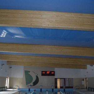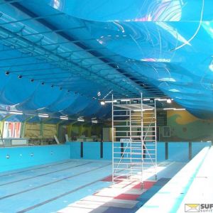 Dostawa i montaż sufitów napinanych w pływalni Delfinek w Górze.