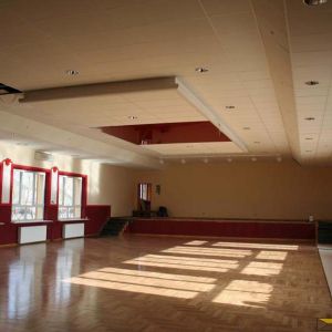 Remont domu Kultury, realizacja sufitu akustycznego wg. projektu p. Zdzisława Mleczaka.