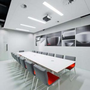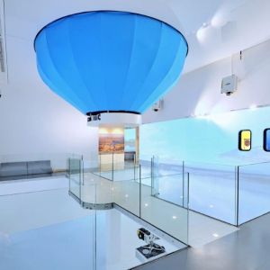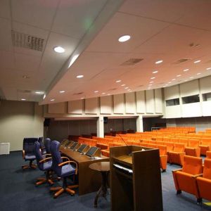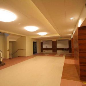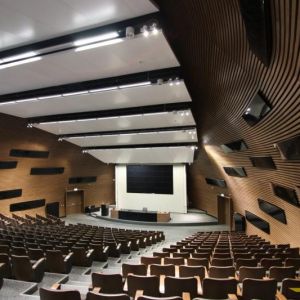 Zastosowane zostały rozwiązania sufitowe, które przyczyniły się do zachowania odpowiedniej i oczekiwanej akustyki w m.in. sali konferencyjnej i części ekspozycyjnej wraz z recepcja i holem.