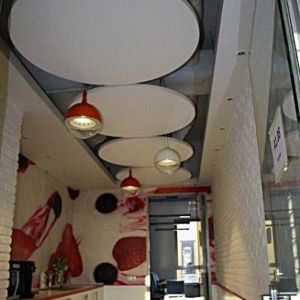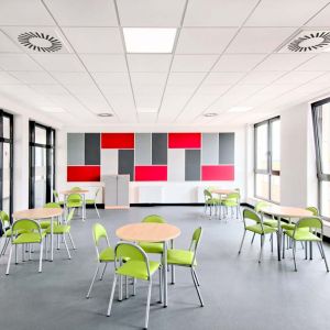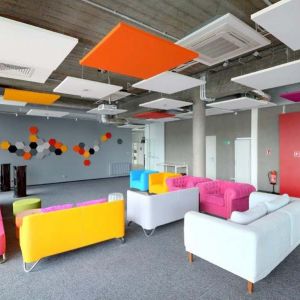 Zakres prac: wolnowiszące płyty Ecophon w kolorystyce podanej przez Inwestora.
