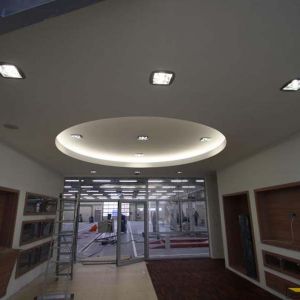 Szybka i kompleksowa realizacja, wykonanie zabudów G/K oraz sufitów modułowych w salonie sprzedaży KIA.