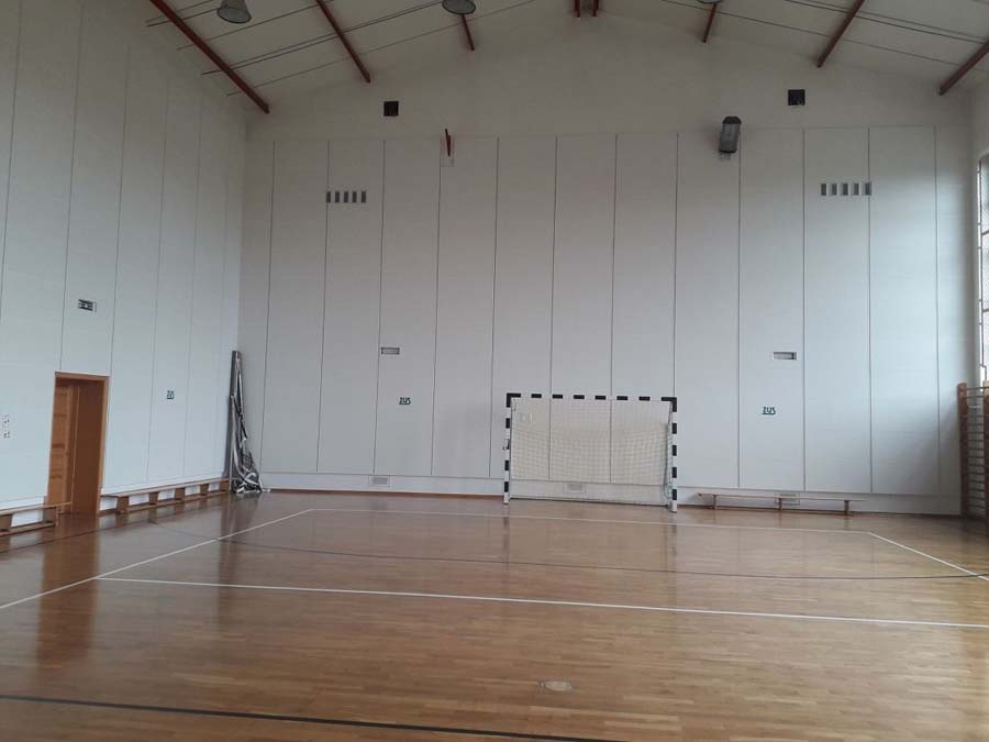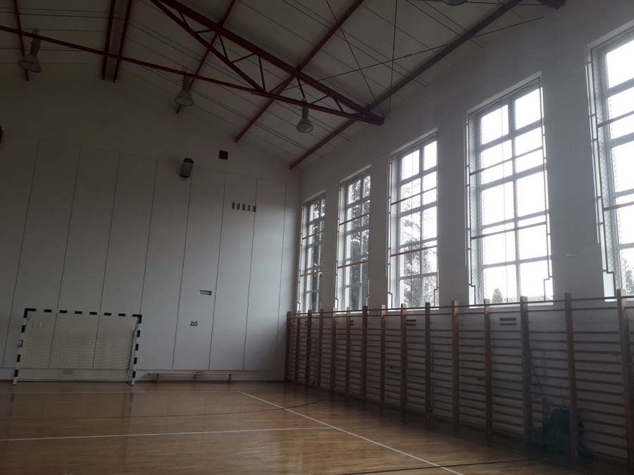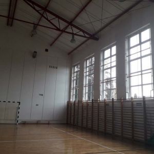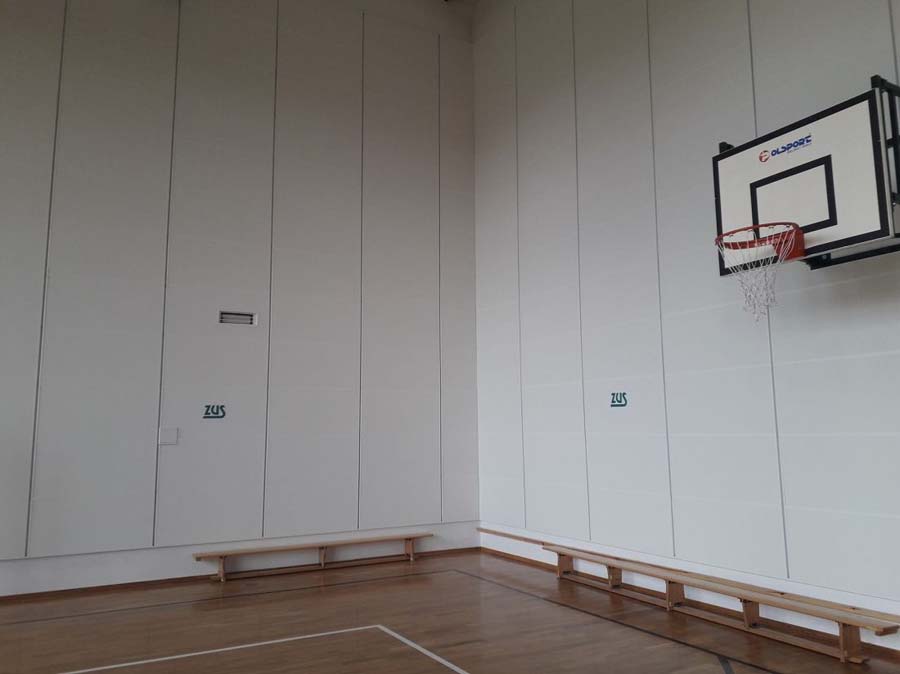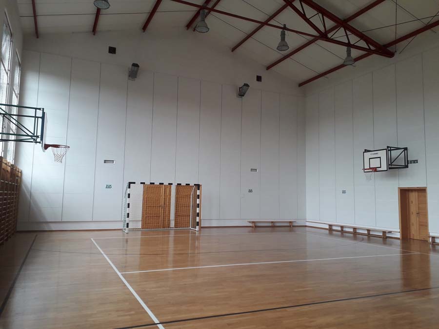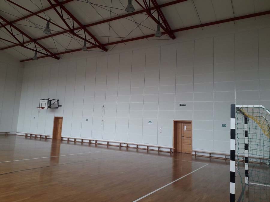 Poprawki akustyczne sali sportowej powstały w ramach programu pod nazwą: Zmniejszenie hałasu, szansą na bezpieczną naukę i pracę.