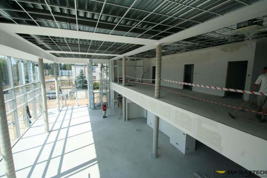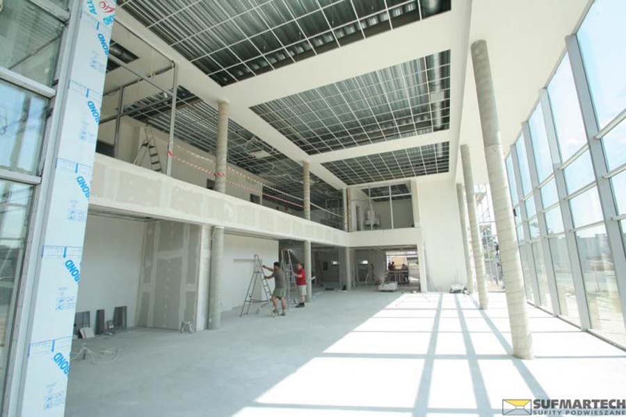 Szybka i kompleksowa realizacja, wykonanie zabudów G/K oraz sufitów modułowych w salonie sprzedaży KIA.