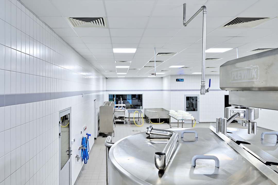 W nowo budowanym zakładzie produkcyjnym, w serowarni w Golęczewie, zamontowaliśmy sufity podwieszane.