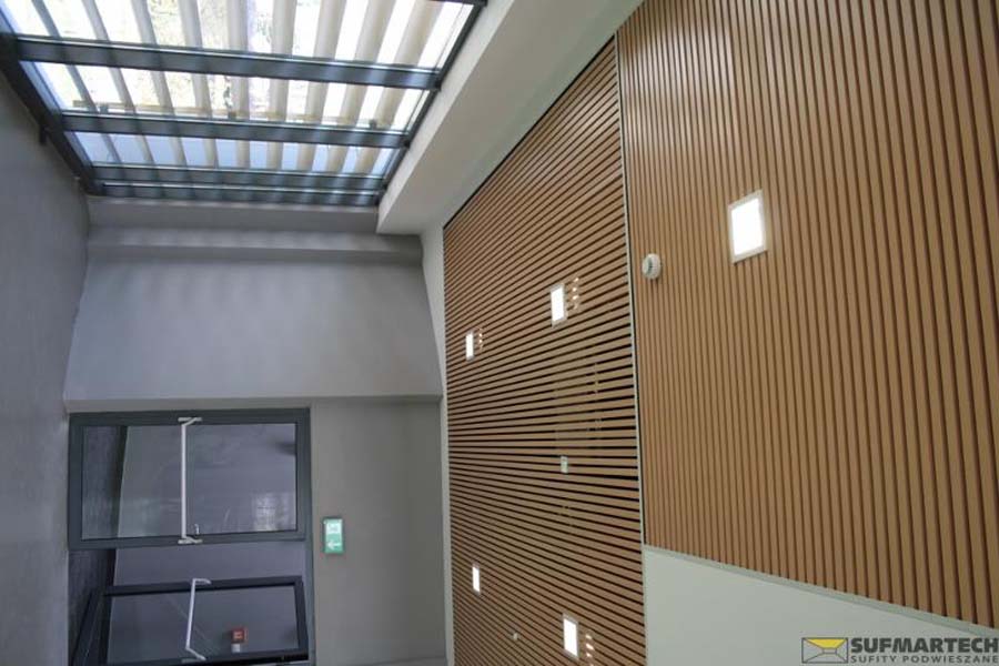 Pozwala na to możliwość zastosowania szeregu dostępnych wkładów akustycznych i płyt perforowanych o różnej gęstości naniesienia otworów. Ponadto elementy sufitowe metalowe umożliwiają tworzenie różnorodnych układów architektonicznych, a także łączenie ich z innymi systemami panelowymi czy napinanymi. Kolejnym autem systemów jest zastosowanie do pomieszczeń, w których wymagany jest łatwy dostęp do przestrzeni pomiędzy sufitem, a pokładem stalowym lub stropem. Izolacja z wełny mineralnej w listwach podstawowych i listwach maskujących oraz położenie dodatkowej izolacji, zapewnia konstrukcji sufitowej spełnienie różnych klas zabezpieczenia ogniowego.